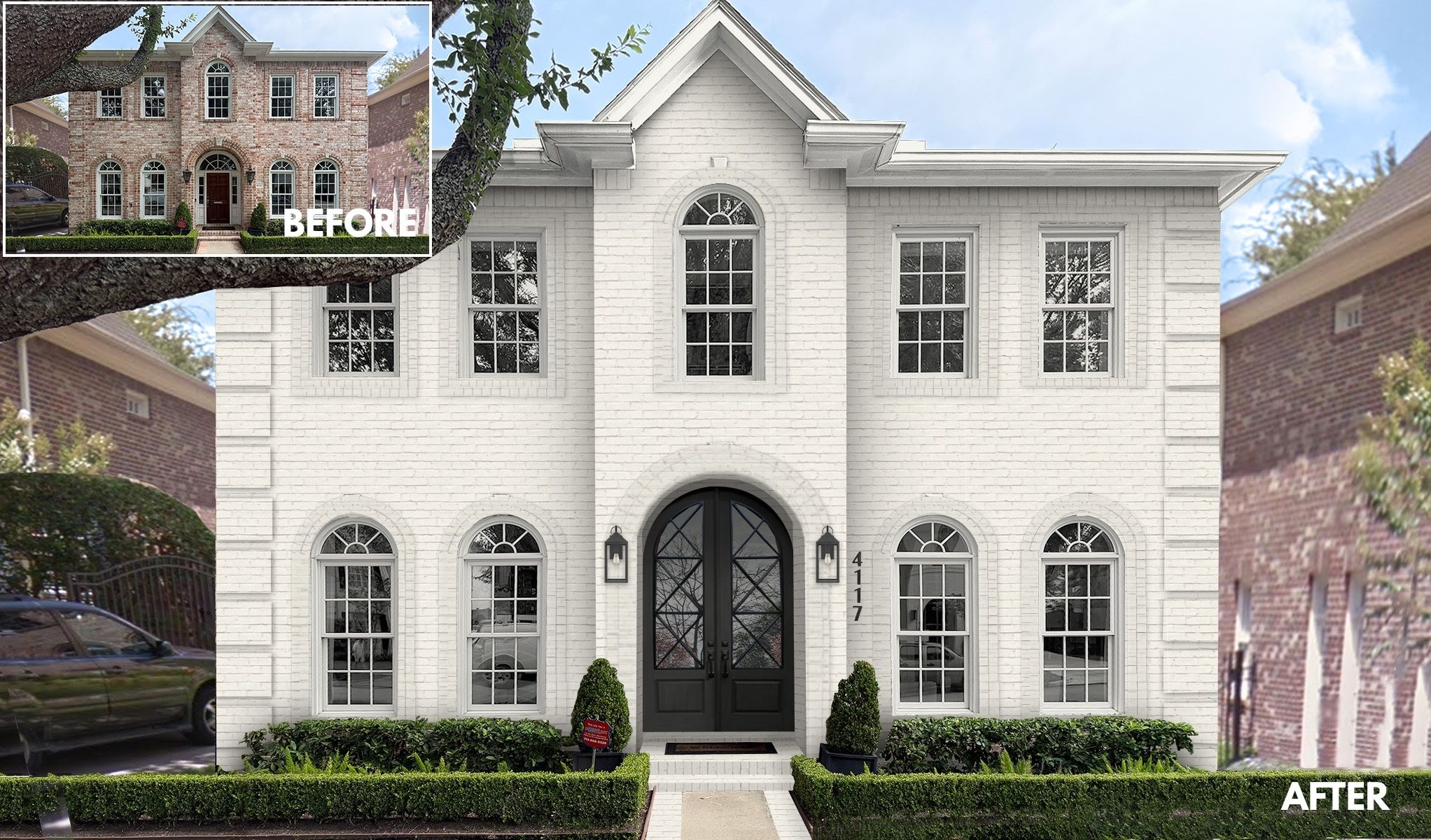 Once the bricks have been cleaned, they will be ready to be painted if you choose to go that route. Painting red brick white instead is an instant way to make the house look updated. Several coats of white paint can give the exterior of the home a fresh feeling. Tip: Once you have painted the brick, add a clear sealant that acts as a barrier against oil, dirt, and water. This will help the brick stay cleaner, and longer.