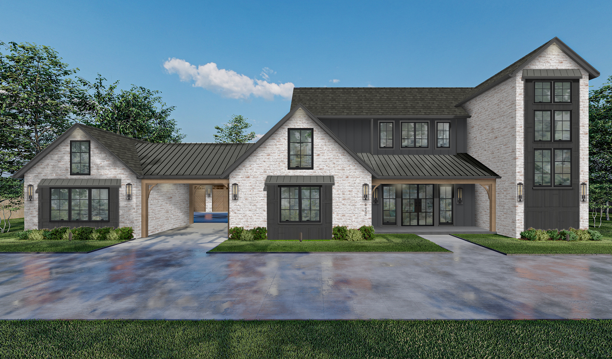 For homes with a red brick façade and siding, choose a new siding that will freshen up the entire exterior. For example, dark blue for the siding and garage door can appear more modern. Pair it with cream trim and the house will look completely different. If the house currently has shutters, consider removing them and adding trim to the windows for a less traditional look. What colors not to use? Don’t go with a bright white for the door or trim, which can look unnatural against red brick. Other shades of red are also a no-no for doors, trim, or accents.