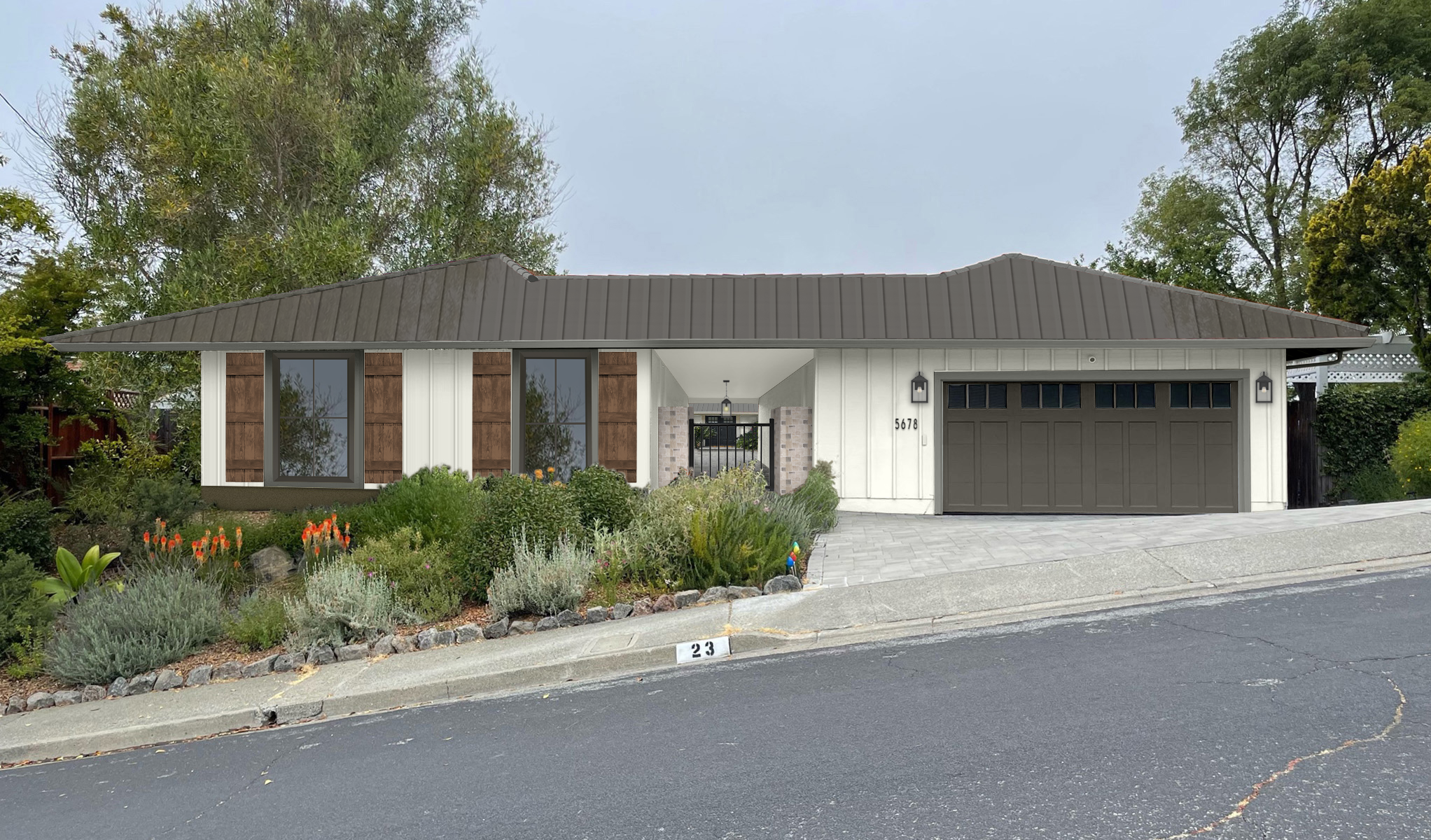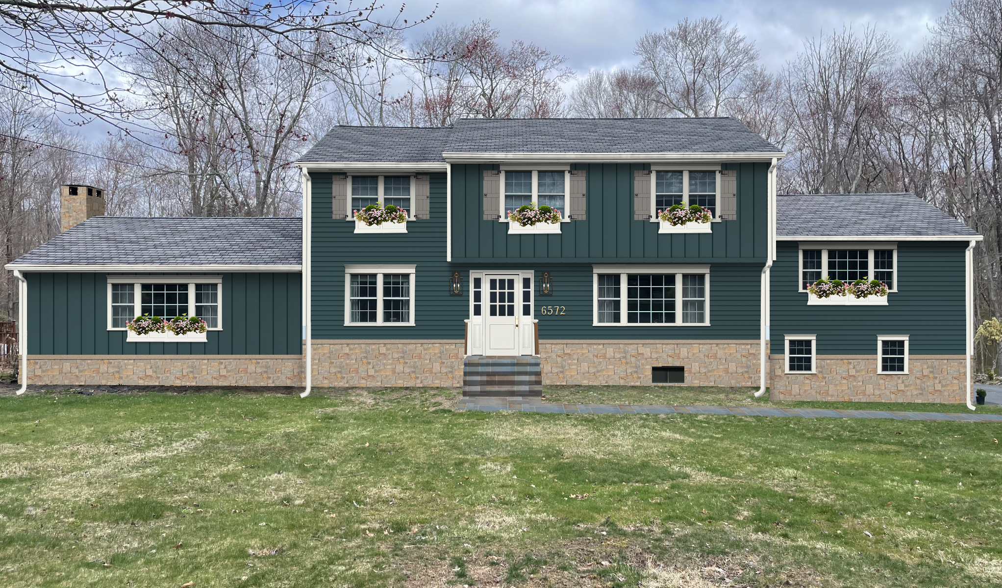 Additionally, some people also prefer gray and navy blue shutters. While for a natural-tone home, deep green exteriors are in trend.